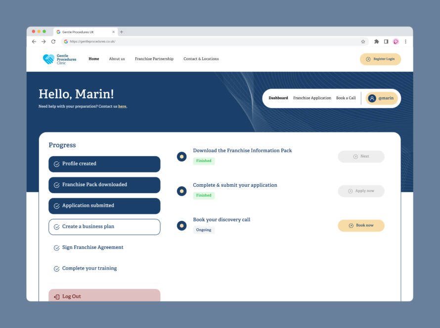 We built a dedicated franchise portal for Gentle Procedures, designed to streamline partner onboarding and internal communications. The portal features secure access, resource management, and automated lead tracking—helping the brand expand efficiently across multiple locations.